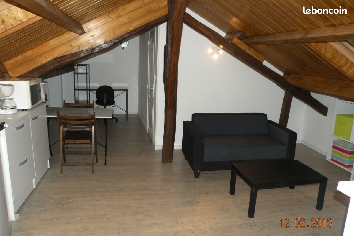 Limoges- 36 rue F. Chénieux, proche du Rectorat et de la Place Denis Dussoubs, loue T2 en très bon état entièrement meublé et équipé. Beaucoup de charme pour cet appartement de 50 m² de surface de plancher aux allures de chalet de montagne. Il se compose d'une cuisine américaine ouvrant sur un séjour prolongé d'un espace bureau. Une chambre avec grande penderie et étagères dispose d'un lit 2 personnes (matelas bultex récent, épais et très confortable). Salle d'eau indépendante avec w-c, douche, meuble/vasque et machine à laver le linge. De nombreux rangements facilitent la vie du locataire. Equipé d'un frigo, plaques électriques, micro-ondes, vaisselle complète, aspirateur, cet appartement est très lumineux. Très bien isolé et climatisé, son chauffage électrique radiant n'en sera que plus économe. Il est situé au 4 ème et dernier étage d'un immeuble calme et bien fréquenté. Le loyer est de 410 € plus 40 € de charges (eau, ordures ménagères, charges de l'immeuble comprises).Garanties financières demandées. Renseignements et visites par téléphone uniquement .