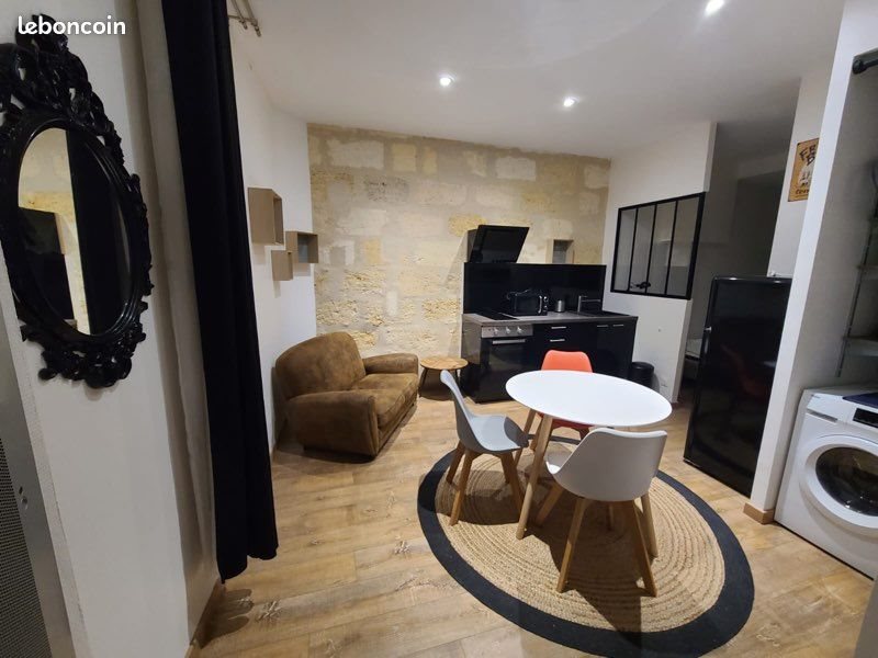 Loue studio meublé de 25 m2, en rez de chaussée, quartier Chartrons, dispo au 13/02. Entièrement équipé et rénové (plaque, four, frigo, lave linge, cafetière et aspirateur). Salon/Cuisine séparée du coin nuit avec un lit de 120cm. Salle d’eau avec douche et wc. Logement non fumeur. À un pâté de maison du Hangar 17 et de la ligne A. Loyer 620€ +40€ de charges (eau froide, taxe ordures ménagères et électricité des communs (couloir). Un mois de caution demandée (620€) et un mois de loyer (660€). Si vous êtes intéressés merci de m’envoyer un dossier complet. Aucun démarchage commercial