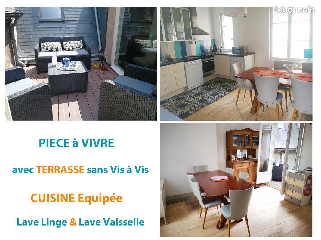 Charmant Appartement T3, Esprit “Petite Maison”, unique sur son palier. Il se compose d’une Piece de Vie lumineuse avec espace Cuisine équipée et Salle à Manger donnant accès à une Terrasse sans Vis à Vis, d’un Salon cosy avec Banquette convertible, ainsi que d’une Salle de Bains avec grande Baignoire et Fenêtre. À l’étage en Duplex, une pièce Mansardée avec Lit Double , au Calme et sans vis-à-vis, offre une belle vue sur la Cathédrale. Atouts : Appartement meublé et entièrement équipé ( Réfrigérateur, Plaques, Four, Lave vaisselle et Lave Linge), Terrasse très agréable, sans vis-à-vis, idéale pour profiter des beaux jours. Chauffage et Abonnemenà l'eau Individuel. Quartier très agréable, avec commerces de proximité, Cinémas et théâtre à seulement 10 minutes à pied, Gare et Tram accessibles en 10 minutes à pied, bus à proximité. Stationnement facile avec le tarif résident de Tours Cet appartement conviendra parfaitement à ceux qui recherchent un logement calme, confortable et bien situé au cœur de la ville, tout en profitant d’une vie de quartier conviviale. Merci de me par téléphone et de me laisser un message si je suis occupée. (Mon numéro est un numéro professionnel mais il s'agit d'une annonce en Pap)