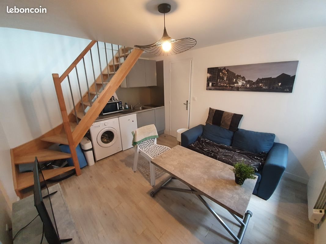 En location meublée un appartement de type F2 situé au 24bis rue de Lecat à Rouen, L'appartement est composé d'un salon/séjour avec canapé-lit, table blasse, meuble Tv et Tv. D'une salle de bain avec douche et Wc, d'une cuisine entièrement équipée. A l'étage se situe la chambre avec une penderie et un bureau. Chauffage électrique, fenêtres en double vitrage, l'appartement est au calme et lumineux. Tout est compris dans le loyer, l'eau aussi. Il y à uniquement le compteur électrique à prendre en plus au nom du locataire. Disponible au