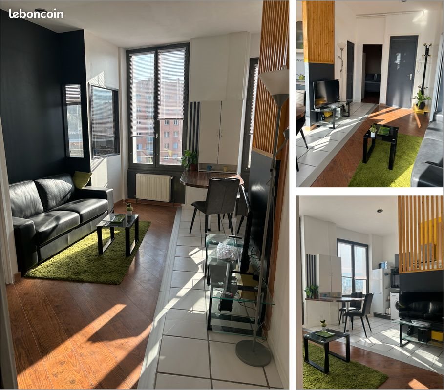 Location T3 meublé Location d’un appartement entièrement meublés de type T3 quartier calme, Idéal 2 étudiants avec bureau pour chaque chambre ou un couple avec enfant au 8 rue de Champagne dans le quartier de centre 2, appartement refait a neuf( isolations sous parquet bois et en plafond ) projet d’architecte, prêt pour 1/01/2026, d'environ 43m² belle hauteur de 320cm, situé au 3-ème étage sans ascenseur. Il se compose d'une cuisine américaine, un séjour salon, 2 chambres, une salle d’eau avec Wc. Chauffage individuel gaz, double vitrage avec stores et volets. Fibre optique, Digicode. Ce savant mélange de prestations qualitatives d'origine, de mise à neuf et d'un ameublement cosy et moderne saura vous convaincre, et satisfaire votre exigence pour votre confort, tout les meubles et cuisine sont neuves, l’appartement est équipé d'un lave linge, lave vaisselle, cafetière, théière, Télé, 2 lits matelas Bultex 2 bureaux avec chaises, banquette cuir, placard miroir etc. Proche de la fac (10mn à pied), à 2 minute arrêt de bus Avenue Rochetaillés, l’école, commerces, jardins et voie rapide. N'hésitez pas à me poser des questions si besoin