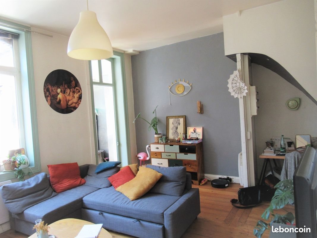 Situé au 2ème étage d'une petite copropriété ce T2 Lumineux de 52m² est composé d'un séjour de 23m² donnant sur une cuisine, d'une salle de bain, d'une chambre de 17m² et d'une cave. 820€ de loyer + 40€ de charges Cuisine équipée : Four + plaques + Frigo Meubles : Tables, chaises, desserte de cuisine,desserte pour Tv, bureau, lit à moins de 5 mn à pieds du métro Gambetta et du marché de Wazemmes Disponible mi févirer 1er contact par mail ou message svp