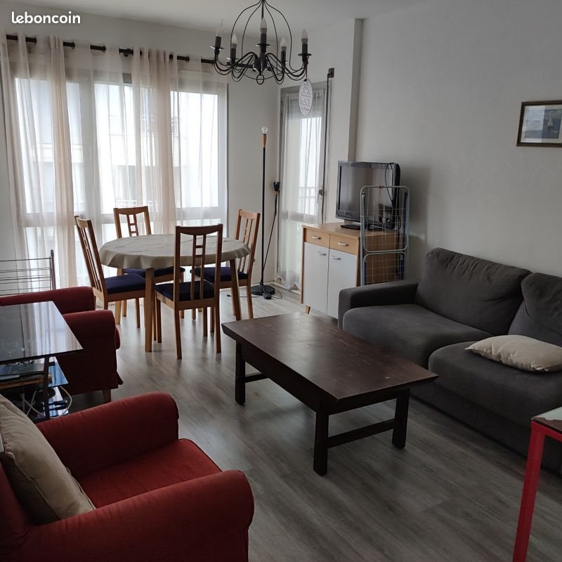 Clermont –ferrand , Place de Jaude, centre ville particulier loue F2 meublé 47 m2 (classé 2 étoiles) + garage individuel fermé et cave. 8 rue Gonod 4 ème étage, ascenceur, deux balcons les trois pièces surplombent un jardin intérieur paysager. Etat neuf, entrée avec placard mural à l’entrée et armoire dans la chambre, canapé convertible dans le séjour et téléviseur. Salle de bain avec baignoire, sèche serviettes. Résidence sécurisée (badge + interphone+ fibre), calme et ensoleillé. Wc indépendant. Tramway au pied de l’immeuble. Loyer mensuel : 620 euros + 120 de charges ( comprenant le chauffage collectif par le sol, l’eau froide et la taxe d’ordures ménagères). Libre : 1 décembre 2025