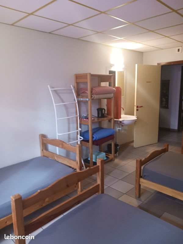 À louer à la semaine ou au mois, chambres dans gîte d'étape. Sanitaires communs (2 douches et 2 toilettes), lavabo dans chaque chambre, salon à disposition. Chauffage électrique. 80€/Semaine