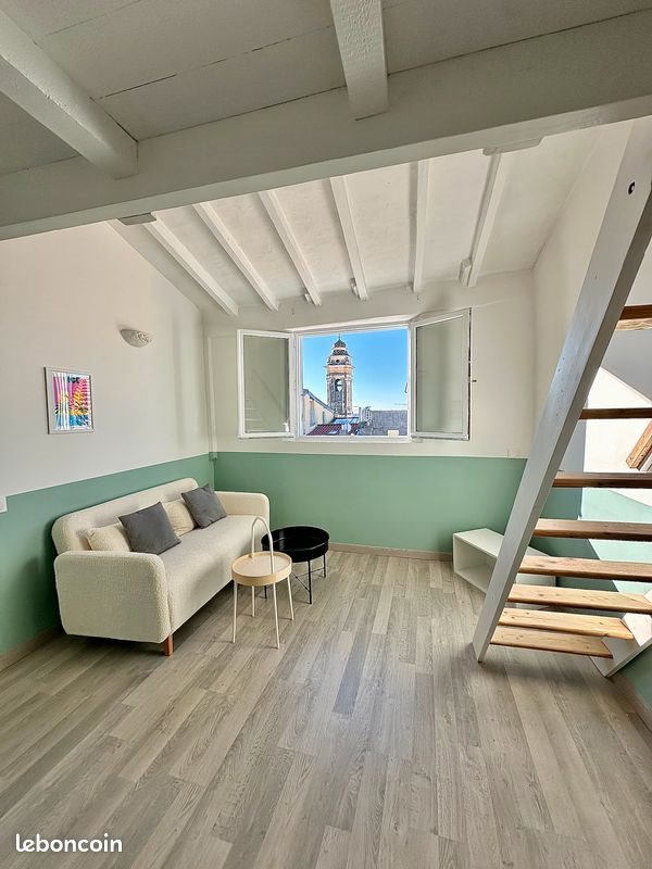 Vieux Nice / Duplex dernier étage Dans un bel immeuble classé bâtiment de France, à 250m de la plage, nous vous proposons un 2 pièces en Duplex en dernier étage, comme une maison sur le toit. Appartement traversant très calme et lumineux composé d'un séjour avec vue mer, sans vis-à-vis, d'une chambre en mezzanine, d'une cuisine indépendante aménagée et équipée ( plaque induction, micro-onde, frigo, congélateur... ), d'une salle de bain avec wc. Premier contact par mail. Photos supplémentaire sur demande. Visite le mardi 27 Janvier à 15h30 pour un état des lieux dès le lendemain le mercredi 28 Janvier à 13h. A bientôt.