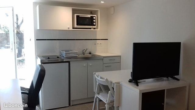 Studio meublé 20 m² au rez-de-chaussée d’une villa, quartier résidentiel calme, près des facultés, Nord de Montpellier. Exposé plein Sud. Pièce principale : Lit 120 cm, chevet, armoire. Bureau + chaise, étagères, Tv 80 cm, wifi. Kitchenette avec évier, petit four traditionnel, 2 plaques vitrocéramique, frigo, vaisselle. Salle de bains : wc, meuble vasque, grande douche à l’Italienne. Chauffage électrique indépendant. Porte vitrée de plein pied sur jardin et piscine. Local commun à la propriété mis à disposition des locataires : lave linge, grand congélateur, réfrigérateur supplémentaire. Logement non fumeur. 450€ par mois + 100€ de participation aux charges