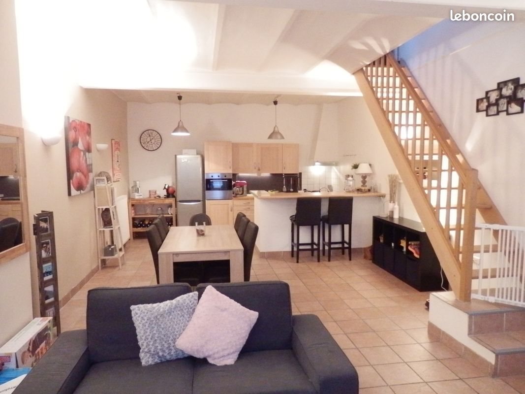Duplex (comme une maison , rez de chaussée plus étage ) . Situé dans une petite rue calme à 80m de la place Luton et de ses commerces . Copropriété sécurisée par un portail électrique à télécommande avec une place de stationnement réservée . Rez de Chaussée : grande pièce à vivre de 50m2 avec cuisine Us équipée . Étage. : couloir desservant deux chambres, une S de B, un W-C , un espace dressing et un espace bureau . Une place de stationnement sécurisée devant le logement fenêtres double vitrage avec volet roulant électrique. Chauffage électrique à fluide . Ballon d'eau chaude électrique de 200l. Logement en parfait état . Loyer : 875€. (Charges de co-propriété inclues)