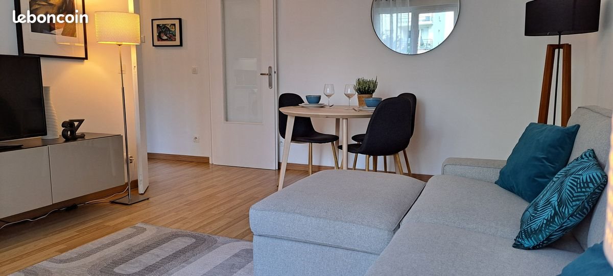 Appartement 2 pièces meublé de 40m² avec balcon donnant sur les jardins intérieurs 1er étage avec [Url masquée pour votre sécurité] de parking en sous-sol incluse dans la location Il comprend: - une entrée avec placard, - un salon meublé (canapé fixe /fauteuil/table et chaises/TV grand écran), - une cuisine équipée fermée (frigo, plaque induction/four/lave-linge/micro-ondes/ machine espresso/grille-pain/ bouilloire/ vaisselle et ustensiles de cuisine). - une chambre avec grand lit et dressing fermé - une salle de bain avec baignoire-douche et Wc - Chauffe-eau plat et radiateurs à inertie électriques programmables (Dpe : D) Emplacement idéal avec de nombreux commerces à proximité, de transports au pied de l'immeuble, accès immédiat aux axes routiers.