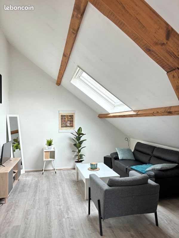 Appartement de 70m carré au sol, 55 loi carrez. 3Ème et dernier étage Situé à 5mn à pied de la place du forum 10mn du Boulingrin et 15mn de la place d'Erlon. Commerces en bas de l'immeuble (superette, restaurants, boulangerie, coiffeur,...) Logement meublé avec cuisine éuipée (four neuf, micro onde, frigidaire, congélateur, machine à laver) Chambre avec lit double Salle de bain (avec baignoire) et Wc séparé Mezzanine pouvant être utilisée comme bureau