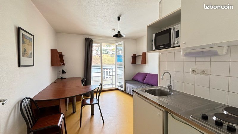 À louer à partir du mois d’octobre un studio meublé entièrement équipé avec petit balcon situé 68 rue Désiré Claude, dans l’hypercentre de Saint-Etienne à moins de 4 minutes à pied de la faculté Jean Monnet. Les avantages : - proximité immédiate de la Faculté et de la ligne de tram à pied - petit balcon avec porte fenêtre - places de parking disponibles, gratuites et sécurisés - wifi inclus - très belle luminosité (orienté ouest) - vue dégagée - situé dans une résidence étudiante de bonne qualité et sécurisée - laverie - ascenseur - calme - bonne isolation thermique - pas de frais de mise en location Loyer de 360 euros (dont 45€ de charges). Montant estimé des dépenses annuelles d’énergie pour un usage standard : entre 360 et 550€ par an. Dpe D. Disponible dès maintenant.