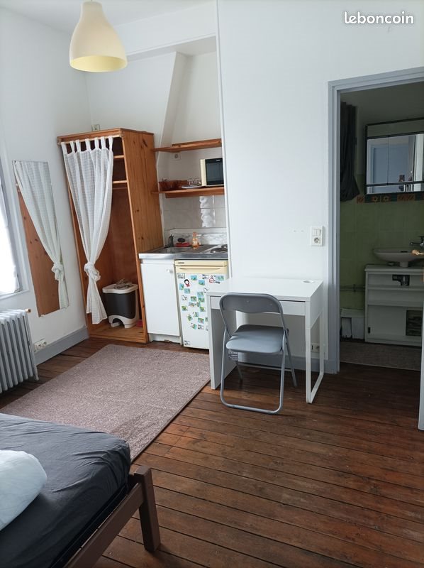Loue studio meublé situé rue bouquet dans un immeuble sécurisée avec digicode à 1 minute à pied de la gare et à 5 minutes de la rue jeanne d'arc Transport en commun au pied de l'immeuble ( bus direction université à mt st aignan et centre commercial la vatine ) et commerces à proximité. Studio de 14 m2 situé coté cour comprenant une pièce principale avec kitchenette équipée d'un réfrigérateur, plaques éléctrique et micro ondes. Salle de bain indépendante avec wc. Le loyer est de 410 euros charges comprise ( 50 euros de charges.) (Chauffage, eau chaude, entretien partie commune..)