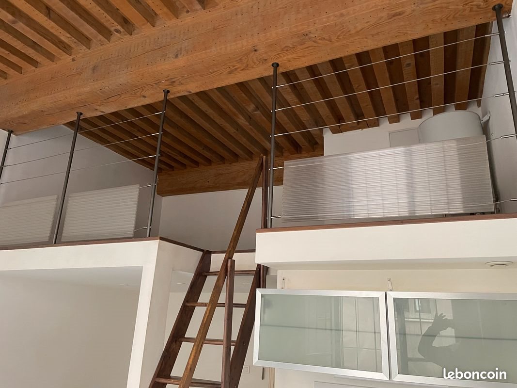 Appartement 1 pièce non meublé quartier Croix Rousse rue Calas 69004 Lyon, situé dans une copropriété au rez-de-chaussée et composé d’une pièce de vie avec cuisine aménagée et équipée, une salle d’eau avec douche et wc d’environ 22m2 et d’une mezzanine (hauteur sous-plafond