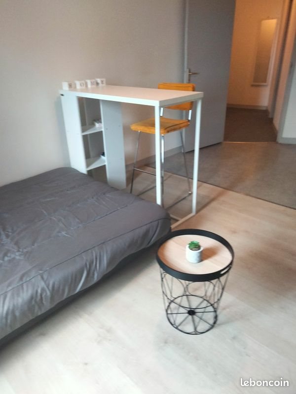 À louer, grand studio situé au 1er étage d’un immeuble récent avec ascenseur, en plein centre-ville de Limoges (quartier gare). Le logement se compose de : - une entrée, - une pièce principale lumineuse (lit 140 cm avec couette, bureau et tabouret, table basse...) avec kitchenette équipée (plaques électriques, hotte, réfrigérateur, placards, étagères, bar et tabouret haut…), - une salle de bain avec baignoire, lavabo et Wc. Prestations : - Double vitrage - Chauffage électrique - Immeuble sécurisé avec digicode Situation idéale : - À 3 minutes à pied de la gare de Limoges - À 3 minutes de l’hyper-centre - Commerces, bus et tramway à proximité immédiate - Proche des lycées (Gay Lussac, …) et des universités Conditions financières : - Loyer : 430 € / mois - Loyer nu : 375 € - Charges : 55 € - Dépôt de garantie : 750 € - Apl possible Stationnement : Possibilité de louer un emplacement de parking pour 45 € / mois dans la résidence Bel Air (environ 15 minutes à pied du studio). ? Pour plus d’informations ou pour organiser une visite, merci de me .