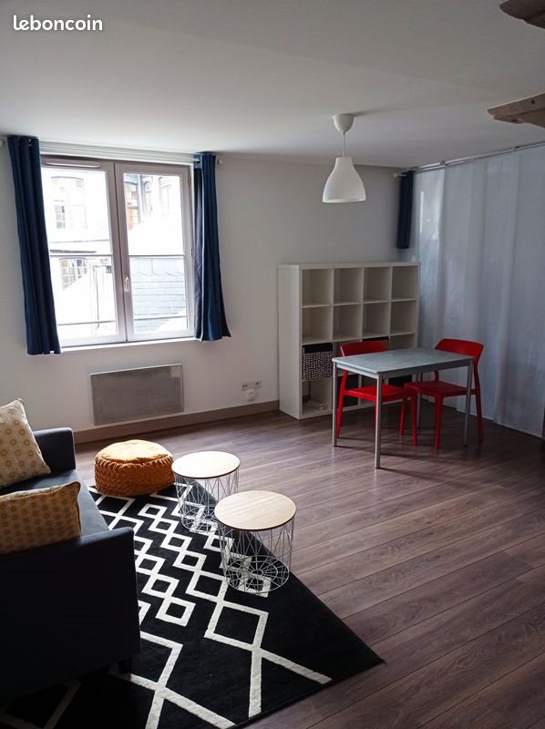 Particulier loue meublé entièrement rénové de 46m2, rue du Vieux Palais, voie piétonne située à 100 mètres de la place du Vieux Marché, dans l’hyper centre de Rouen. Cuisine équipée avec réfrigérateur, plaques de cuisson électrique, four et micro-onde. Salle d’eau avec cabine de douche, sèche serviette et lave linge. Wc séparé. Pièce principale avec coin salon -salle à manger et coin chambre avec bureau. Nombreux rangements. Appartement au calme, au 2ème étage, avec vue côté cour intérieure, dans un immeuble sécurisé. Transports en commun (bus et Teor) à proximité. Loyer de 695€ charges comprises (charges de copropriété…) Chauffage électrique et compteur d’eau individuels à la charge du locataire. Locataire sérieux 2 mois de caution et 2 garants exigés Visite sur rendez-vous pris par téléphone