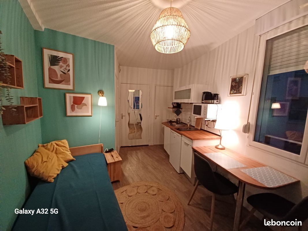 En plein centre-ville à 50 mètres de la place de Jaude entre le magasin Monoprix et l'Opéra. Immeuble sécurisé, ascenceur, 4eme étage. Studio entièrement équipé de 14 m² comprenant : - une salle d'eau (douche - Wc - petit lavabo), - Kitchenette equipée (four combiné, plaques à induction, un frigo, cafetière, grille pain, bouilloire, vaisselle…) - un lit peigne (80 cm plié et 160 cm déplié). - Un espace bureau - une Smart Tv, - un grand placard ... L'abonnement internet (fibre) et l’eau sont compris dans les charges Le studio est libre à partir de février. Si vous êtes intéressés, merci de nous par la messagerie du bon coin en nous expliquant votre situation (étudiant.e, stagiaire, [Url masquée pour votre sécurité]) ainsi que vos possibilités de garantie.