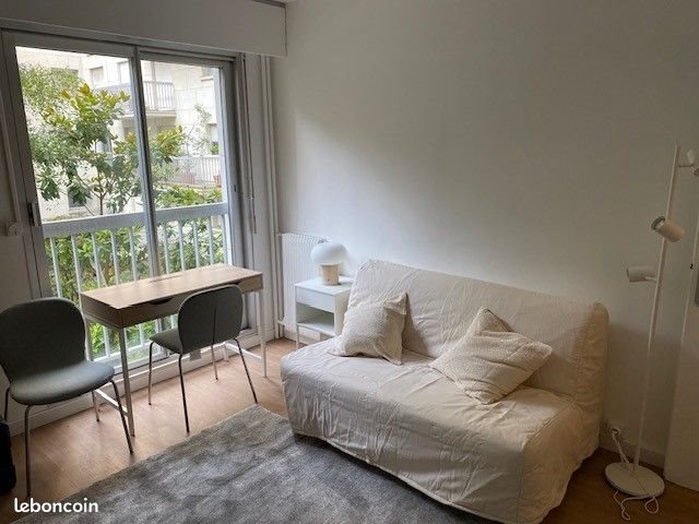 Paris XVIème. Trocadéro. Studio de charme, 20 m² carrez, 2ème étage avec ascenseur sur jardin. Décoration moderne et soignée. Cuisine intégrée sur mesure. Équipements : Plaques, four micro-ondes, lave-linge, petit électroménager, canapé convertible. Salle d'eau séparée de la chambre avec douche à l'italienne et wc. Studio très agréable, lumineux et très calme. Refait à neuf. Situation centrale à deux pas du Trocadéro. Chauffage individuel électrique. Métro : Trocadéro (L. 6,9). Eligible Apl