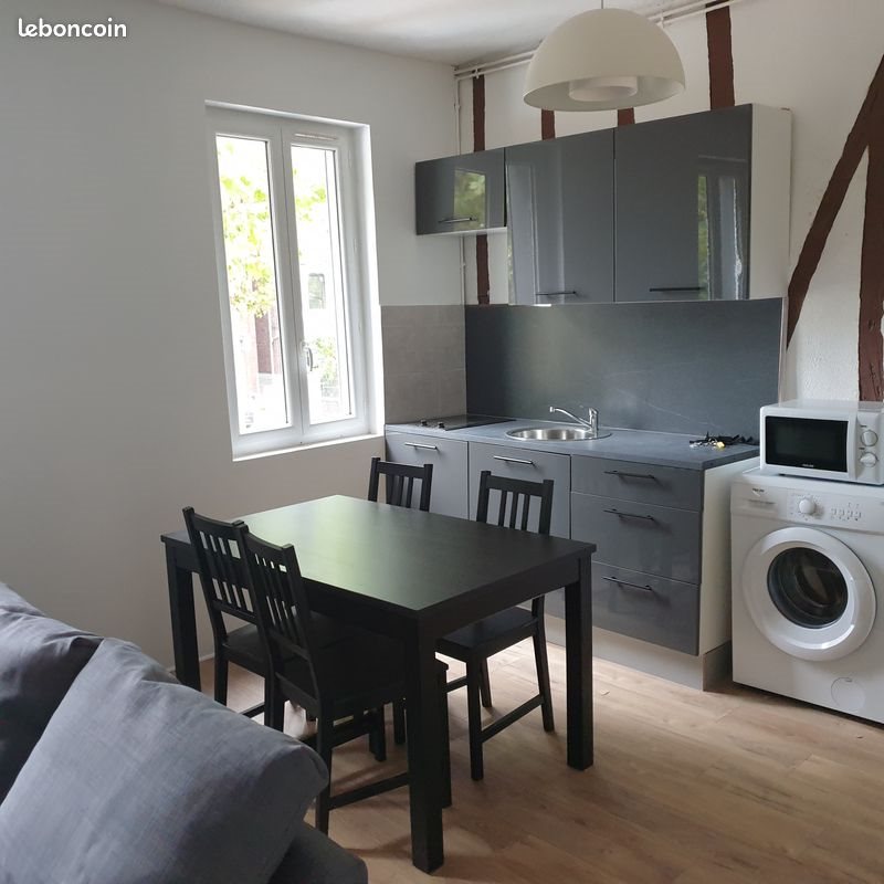 F2 meublé situé Bld Jean Jaurès – Rouen - Proche Docks76 et Teor station Bapeaume - T2. Dans un petit immeuble situé boulevard Jean Jaurès à Rouen, à louer, F2 au 1er étage. Comprenant : • Une cuisine aménagée et équipée de plaques de cuisson, une machine à laver, un micro-onde, un frigo, un aspirateur, une grande table et 4 chaises • Grand espace vie lumineux avec deux fenêtres et parquet meublé d’un canapé d’angle convertible lit, buffet, grande penderie, deux étagères et une table de salon • Une chambre au calme, donnant sur la cour arrière de l’immeuble avec parquet, lit 140 x 200 et table de chevet • Une salle de douche et Wc L’appartement est raccordé à la fibre. Situé au 1ère étage, l’appartement est très lumineux (traversant) et l’immeuble dispose d’une petite cour qui est partagée entre les locataires. Des box sont également disponibles pour le stationnement d’un vélo. Situé à proximité des Docks 76 et à 100 mètres de l’arrêt de Teor (Bapeaume – ligne T2). Il est également aisé de stationner gratuitement devant l’immeuble et d’accéder rapidement aux écoles et universités situées à Mt St Aignan. Loyer de 575€ (545€ + 30€ de charges). Attention les charges sont par personnes, si 2 personnes souhaitent occuper le logement, les charges seront donc de 60 euros. Charges incluant l’eau et pour les parties communes : lumière, ménage, entretien du jardin et taxe ordure ménagère. Disponible à partir du 11 décembre 2025 Agence s'abstenir