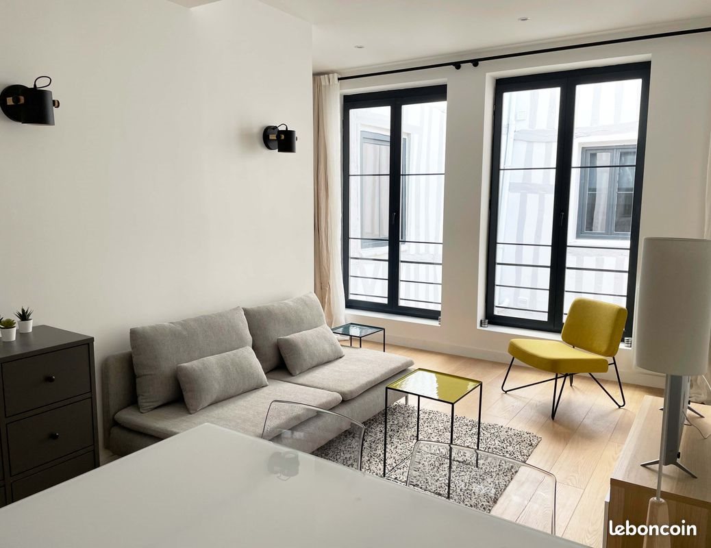 Rouen Rive Droite Centre Historique - Appartement 2 Pièces Au Calme Donnant Sur Cour Intérieure Très beau T2 meublé de 36m2, très lumineux donnant sur un patio à colombages de style normand situé au cœur du quartier piétonnier de la Rue Eau de Robec , à proximité de nombreux commerces, restaurants, bars, cinéma, opéra, théâtre et universités. Appartement entièrement rénové en 2021 avec beaucoup de cachet, situé au 2ème étage d’une petite copropriété, elle-même intégralement rénovée en 2021. Cet appartement est composé d’un salon/salle à manger avec une cuisine ouverte entièrement équipée (lave-vaisselle, réfrigérateur-congélateur, plaques de cuisson, four, cafetière électrique, four micro-onde, grille-pain, hotte, ustensiles de cuisine). L’Appartement est équipé d’un lave-linge séchant et d’une Tv écran plat 110 cm Une chambre avec dressing et lit-coffre offrant une grande capacité de rangement. La salle de bain, avec douche Italienne, est attenante à la chambre. Toilettes séparées de la salle de bain. L’Eau chaude est produite par chauffe-eau de grande capacité. Le chauffage est individuel électrique par radiateurs basse consommation à inertie sèche Équipé avec interphone et Fibre optique disponible pour internet. L’Appartement est très proche à pied des lignes de bus et métro, de la gare Sncf, ainsi que de nombreuses Écoles et Universités. Le Campus Universitaire de Mont St Aignan est à 20 mn en bus. Conditions de la location : - Loyer : 740€ - Charges : 50€ (entretien et ménage des parties communes, eau froide) - Pas de frais d’agence, location en direct par particulier - Pas de frais pour les visites et la rédaction du bail et l’état des lieux entrée/sortie - Dépôt de garantie : 740€ (1 mois de loyer) - Non inclus : contrat de fourniture d’électricité dont le chauffage électrique (la consommation électrique moyenne sur l’année est d’environ 65€ mensuel) Dpe: Classe énergie C - Classe climat A. Appartement disponible à la location à partir du 16 février 2026. N'hésitez pas à me pour plus d'informations ou pour organiser une visite.