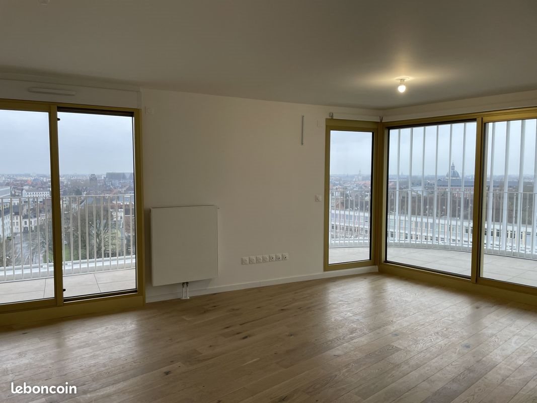 Résidence Emblem-Lille A louer appartement T3 de 70m2 avec Balcon de 23m2 comprenant une pièce de vie avec cuisine équipée, 2 chambres, 1 salle de bain avec baignoire et 1 Wc séparé.