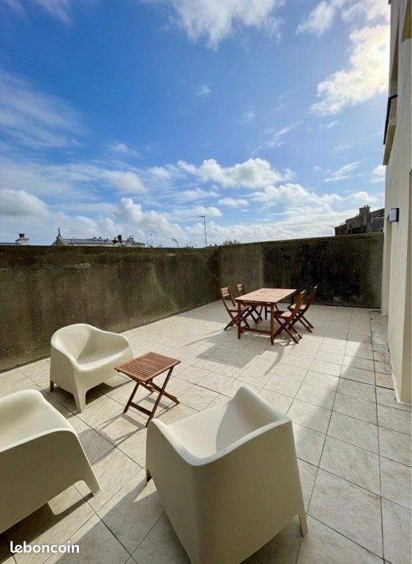 T2 rénové –Grande Terrasse – Brest centre - quartier calme Description : À louer, bel appartement T2 de 34 m2 avec entièrement refait à neuf, situé au 1er étage d’un immeuble sécurisé (accès vigik et porte ventouse). Dalle béton. Exposé Est / Sud-Est, il bénéficie d’une grande terrasse privative de plus de 35 m2 idéale pour profiter du soleil. Composition : • Entrée • Chambre spacieuse avec rangement et lit Queen size avec matelas qualité hôtel à mémoire de forme • Salle d’eau moderne • Cuisine toute équipée (lave-linge, frigo, machine à café à grains, four micro-ondes/grill) • Pièce de vie avec Smart Tv • Volets roulants électriques sur toutes les fenêtres Appartement très économe en énergie (rénovation complète, isolation neuve – Dpe B Immeuble avec local poussettes dans le hall. Emplacement idéal : Boulangerie à 50 m, Bus à 100 m, Tram à 200 m ? Loyer : 800 € / mois + 40€ charges (Option garage fermé : 80€) ? Disponible