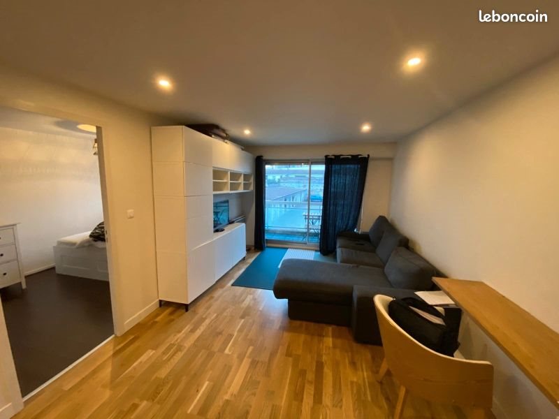 A 4' à pied du tram B St Nicolas particulier loue T2 meublé 48m2 séjour avec cuisine ouverte et ilot central balcon sud chambre salle d'eau Wc indépendant entièrement équipé: réfrigérateur, congélateur, micro ondes, lave sèche linge, télévision 820€+60€ ch