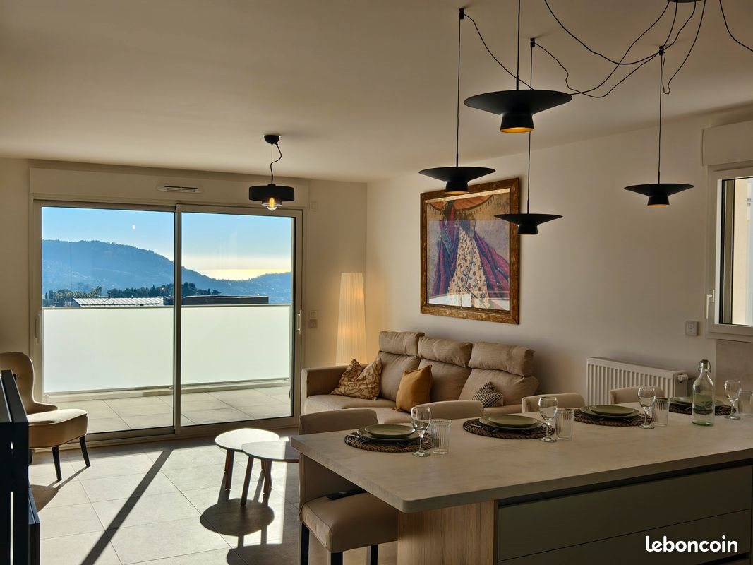 Location Meublée Appart 3 Pièces Résidence Neuve Nice - Rimiez. Au sein d’un parc paysager de 10.000 m² avec piscine, bel appartement au 2ème étage (sur 3), ensoleillé, vue dégagée mer/collines, traversant dble orientation : séjour S-E / 2 chambres N-O - Superficie 64 m² - Beau balcon profond 9 m²- Grand parking S-Sol – local à vélos Équipements principaux : Chauffage et production eau chaude individuel gaz chaudière haute performance. (Dpe B) Cuisine ouverte : Frigo grande capacité 485 l (336 l + 149 l) /Four pyrolise /Lave-vaisselle 13 couv./Plaque induction 4 foyers. Séjour : Climatisation/TV 65’ Wc indépendant / Espace aménagé buanderie / lave-linge Chambre 2 : meubles sur demande pour correspondre aux besoins des locataires Ets scolaires à proximité (école Aire St Michel…) – Arrêt bus pied résidence (Hôpital des Sources) – Clinique St Georges à 5’ voit. Loyer mensuel hors charges 1760 € - Provision sur charges mensuelles 220 €. Dépôt de garantie 2 mois de loyer : 3520 € - Aucun frais d’agence Photos complémentaires sur demande
