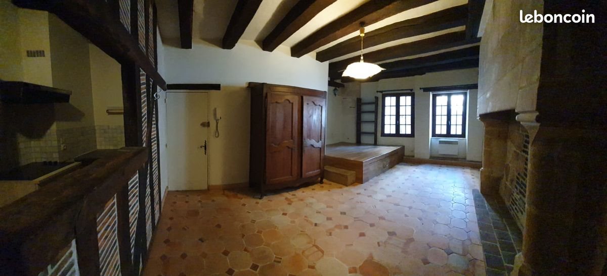 Grand F1 bis de charme au 2ème étage d'un immeuble de caractère dans quartier historique du Vieux Tours, à deux pas de la célèbre Place Plumereau, comprenant: - une pièce principale: sol tomettes, poutres apparentes, cheminée monumentale en tuffeau (sans possibilité d'y faire du feu), un sommier glissant sous estrade parquetée, une armoire - une petite cuisine équipée séparée de la pièce principale par cloison en colombage - une salle de bains avec baignoire - Wc séparés interphone, fenêtres à doubles vitrages, chauffage individuel électrique. - une cave. Nb: le Dpe a été réalisé en 2014 et depuis les radiateurs ont été remplacés. Libre le 15 janvier 2026 Loyer : 550 € + provision sur charges: 35 €
