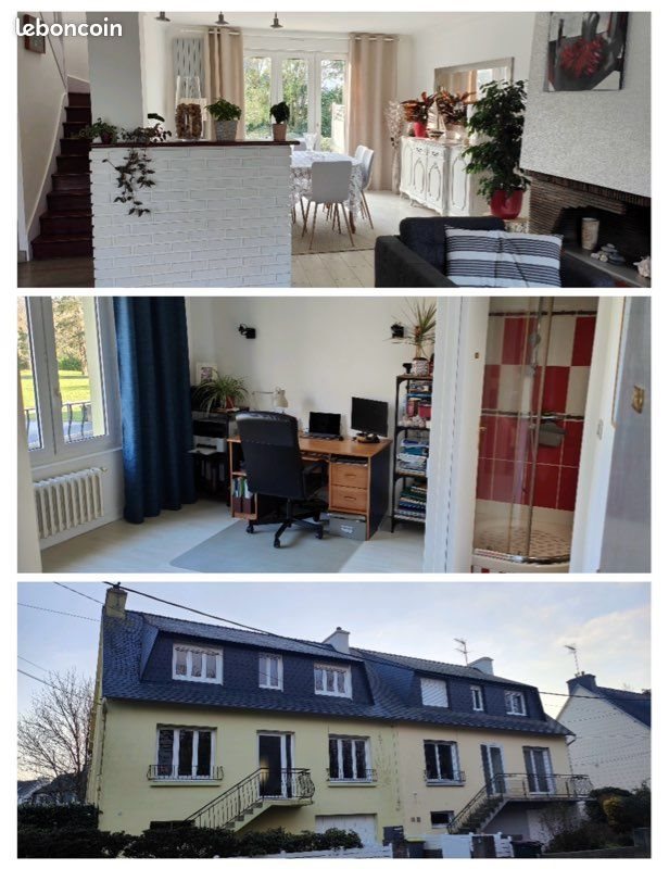 Quartier Lambezellec Rue calme donnant sur le parc Keralan Maison mitoyenne d’une superficie de 150m2 Au Rdc : - entrée - suite parentale avec Sde (douche) - toilettes - salon, salle à manger traversant donnant sur terrasse - Cuisine indépendante aménagée et équipée (réfrigérateur, Piano gaz+four, lave vaisselle). La cuisine donne sur une véranda (rejoignant la terrasse) A l’étage : - pallier, - 4 chambres avec placard - Sde (double vasques, douche, toilette) Sous-sol complet (70m2): - garage pouvant accueillir une voiture - coin cave - espace buanderie - chaudière fioul et cuve, ballon Extérieur : - jardin 250m2 - barrière électrique Libre mi février 2026 Agence s’abstenir