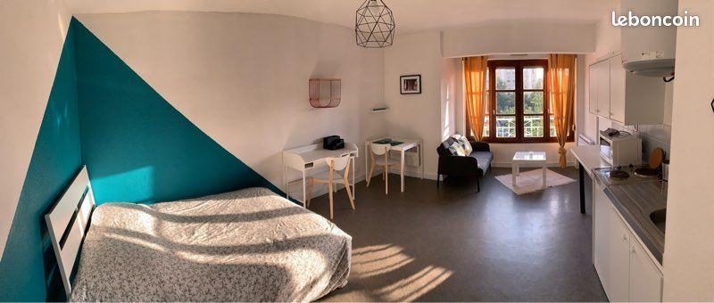 Grand studio meublé 30m2 avec garage secteur Centre 2 / Bellevue Idéal étudiant ou jeune actif. Particulier loue grand studio meublé (mobilier neuf) et équipé à Saint-Etienne. Idéalement situé place du Bicentenaire (à mi-chemin entre Centre 2 et Bellevue) dans immeuble sécurisé (accès par badge et interphone), à proximité de toutes commodités, à 50m du tram, le studio très lumineux se situe au 2ème étage d’une belle copropriété bien entretenue et calme. Proximité universités (Jean Monnet site Tréfilerie à 2 arrêts de tram / 10 minutes à pied) et grandes écoles. Le studio se compose d'une entrée / hall séparé avec grand placard de rangement et d'une pièce à vivre comprenant : Lit 2 places Canapé Table basse Table à manger 2 feux de cuisson Micro onde Bureau Placard de rangement cuisine Salle de bain : baignoire, vasque, Wc Chauffage individuel électrique Ascenseur Immeuble raccordé à la fibre Le studio est proposé à la location accompagné d'un garage (box) situé au sous-sol de l'immeuble. Loyer (studio et garage) : 400€ + 50€ de charges (comprenant l'entretien des parties communes et ordures ménagères uniquement) Dépôt de garantie de 2 mois sans les charges soit 800€.