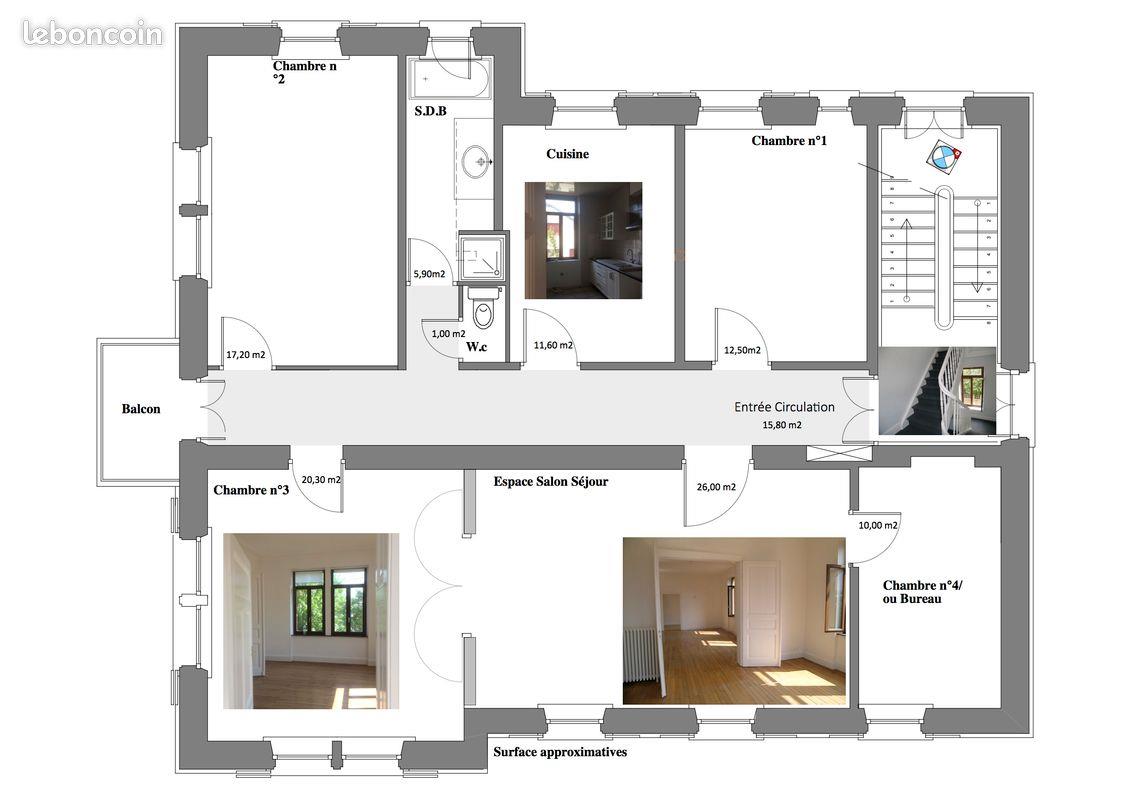 Part loue T5 120m2 Metz Le Ban st Martin Dans maison de caractère au calme au premier étage Appartement Lumineux à 5 mm du centre-ville de Metz, au pied du Mont St Quentin. Accès facile et rapide à l'autoroute A31 Proche des commodités et des écoles :maternelle/primaire /Collége. Facilité de stationnement aux abords de la maison. Espace Salon /Séjour Cuisine 3 Chambres + 1 bureau. Salon/Séjour Revêtements : Parquet/carrelage S.D.B : Baignoire + douche + porte-serviette (Wc séparé) Cuisine : meublée non équipée. Petit Bacon Chauff ind gaz Cave en sous sol Menuiseries (alu) Double vitrage/volet électrique Fin de bail 8 janvier 2026 Loyer 995€ +90€ charges (provision charges) =1085€ Modalité de récupération des charges locatives: provision avec régularisation annuelle. Dépôt de garantie 990 €.