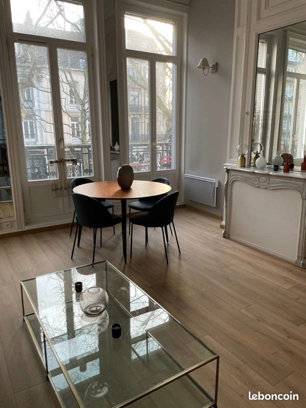 À louer, superbe T2 meublé de 60 m² situé au 1er étage d’un immeuble haussmannien, à deux pas de la Citadelle de Lille. Caractéristiques : - 1 chambre, - 1 salle de bain - Cuisine équipée : plaques induction, four, lave-vaisselle, lave-linge séchant, réfrigérateur Séjour lumineux avec parquet massif, moulures, cheminées et miroirs Loggia + balcon filant Entrée avec placard desservant Wc, chambre, salle de bain et séjour Meubles de qualité, nombreux rangements Loyer : 1000 € / mois + 80 € de charges Disponible de suite Pour visiter ou obtenir plus d’informations, merci de me par mail ou messagerie le bon coin dans un premier temps
