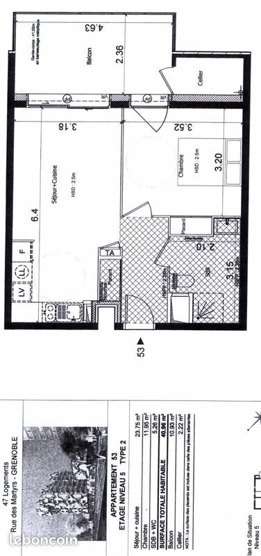 T2 (loi Pinel) de 41m² situé au 5ème étage dans la résidence Le Python, éco-quartier Cambridge sur la presqu'île de Grenoble, situé en face du Cea (angle rue René Maus et Avenue des Martyrs). Diagnostic de performance énergétique refait en décembre 2023 (cf. Photo jointe) : classe énergétique B (38 kWh/m²/an d'énergie finale), Ges A. Avec ascenseur et prestations de qualité : rafraîchissement d'air l'été, double vitrage haute performance, ventilation double flux... Il comprend une entrée avec placard aménagé, une cuisine complètement équipée et aménagée (table de cuisson vitrocéramique, four, machine à laver, lave-vaisselle, hotte, placards bas et haut) ouverte sur séjour de 23m² donnant sur balcon carrelé de 11m² et cellier de rangement fermé (2,2m²), une chambre de 12m² avec placard aménagé donnant sur le balcon, une salle de bains/WC (douche). Cave de 1,5m². Une place de Parking dans Silo de la mobilité (sécurisé) à proximité est réservée (comprise dans les charges). A proximité immédiate du tramway (au pied de l'immeuble) et lignes de bus, polygone scientifique, accès aisé au centre-ville de Grenoble Europole et Victor Hugo en tramway ainsi qu'aux voies rapides. A proximité du Cea, Cnrs, Ill, Esrf, Ibs, STMicroelectronics, Schneider Electric, Corys, Biomérieux... L'appartement est disponible à compter du 19 janvier 2026. Zone soumise à l’encadrement des loyers. Loyer de base : 614,79 € Loyer de référence majoré (loyer de base à ne pas dépasser) : 614,79 € Charges : 110,00 € Note : L'appartement étant sous la loi Pinel (zone B1), le dernier revenu fiscal de référence des locataires ne doit pas dépasser un certain plafond. Par exemple : - personne seule : 35825 €/an - couple : 47842 €/an - personne seule ou couple ayant une personne à charge : 57531 €/an Les informations sur les risques auxquels ce bien est exposé sont disponibles sur le site Géorisques :