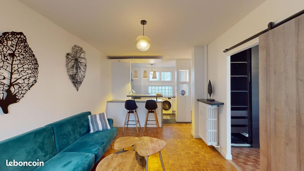 L'appartement est composé : - D'une entrée, équipée d'un placard. - D'une belle cuisine semi-ouverte sur le séjour, équipée d'un réfrigérateur/congélateur, d'une cuisinière (four, plaques), d'un lave-linge, d'un évier et d'un bar avec deux tabourets, le séparant du séjour. - D'un séjour, équipé d'un canapé et de trois tables gigognes. - D'une chambre, équipée d'un grand dressing mural, d'un lit double et de deux chevets. - D'un Wc indépendant. - D'une salle de bain, équipée d'une double et d'un meuble vasque. Cet appartement possède un chauffage individuel électrique. Il est situé au premier étage d'un immeuble. L'immeuble propose l'accès à un local à vélos.