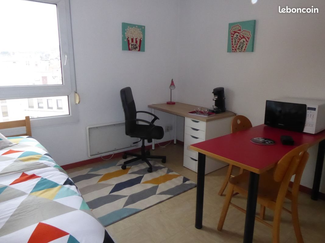 Dans une résidence sécurisée, un studio meublé, tout équipé. Belle pièce de séjour lumineuse. Lit, bureau, fauteuil. Kitchenette : plaque électrique, évier, réfrigérateur, micro-ondes. Table et deux chaises. Salle d'eau séparée : Wc, lavabo, baignoire-douche. Le studio comporte, en outre, une place de parking privative, en surface, avec arceau.