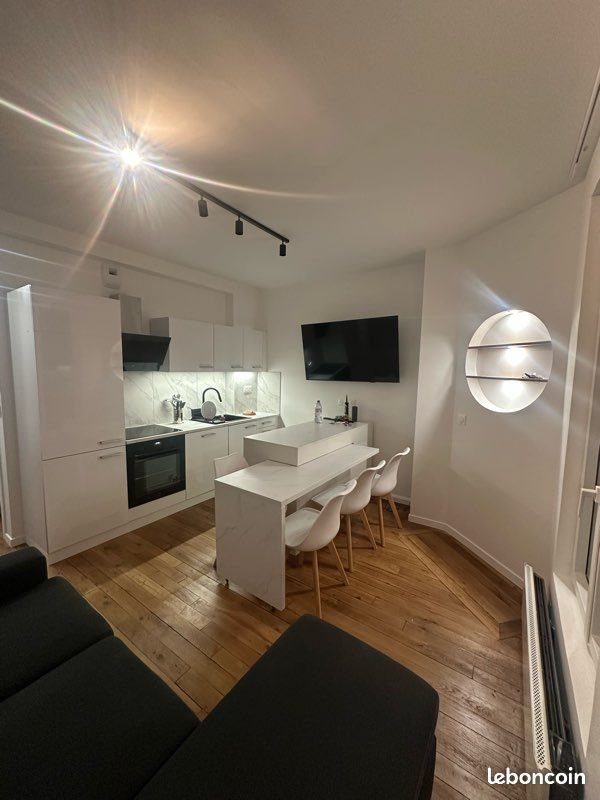 Appartement T2 de 35 m² situé au 3ᵉ étage sans ascenseur, entièrement rénové à neuf : électricité, plomberie, isolation, fenêtres, ventilation, revêtements sols et murs. Entièrement meublé et équipé : machine à laver, lave-vaisselle, frigo, congélateur, four, hotte, plaque à induction, canapé, tables, chaises, lit, armoire, bureau et nombreux rangements, couverts, vaisselle, plat cuisine, ustensiles. Localisation : À 5 minutes à pied de la station Maison Blanche (M14 / M7 / T3a). À proximité immédiate : centre commercial, salle de sport, supermarchés, restaurants. Conditions financières : Loyer hors charge : 1280€ Charges : 120€ (eau et partie commune) Loyer : 1 400 € charges comprises Dépôt de garantie : 2 mois de loyer hors charges, soit 2 560 €, à verser à la signature du bail, en complément du loyer au prorata des jours restants. Aucun frais d’agence Disponibilité immédiate N’habitant pas à Paris, je serai sur place le 22/12 pour effectuer les visites. Priorité sera donnée aux candidatures sérieuses et rapides. Merci de me via Le Bon Coin pour un premier échange, en me communiquant les infos suivantes : situation personnelle (couple ou non), situation professionnelle : salarié, étudiant, type de contrat et motivation de la location puis ensuite par téléphone afin de planifier une visite. Photos et vidéos supplémentaires disponibles sur demande.