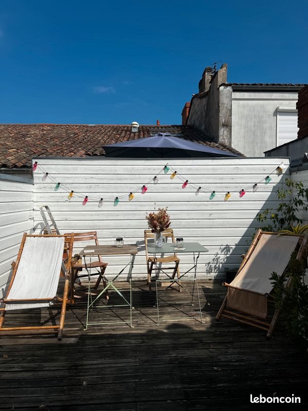 Je loue mon appartement meublé rue du Jardin Public, idéalement situé entre le Jardin Public et la rue Notre-Dame. L’Appartement, très lumineux, bénéficie d’une terrasse de 15m² sans vis-à-vis. Il se compose : • d’une entrée, • d’un salon donnant sur la terrasse avec cuisine ouverte équipée, • d’une climatisation réversible, • d’une chambre séparée avec fenêtre sur la terrasse, • d’une salle de bain avec baignoire, • de toilettes indépendantes avec douchette. ? Fibre internet ? Extrêmement calme : aucun bruit de rue ou de ville, parfait pour télétravailler ou se reposer. ?️ Récemment rénové : sols, terrasse, baignoire, sanitaires, peintures. Un vrai cocon en plein cœur de Bordeaux idéal pour une location courte / moyen terme.