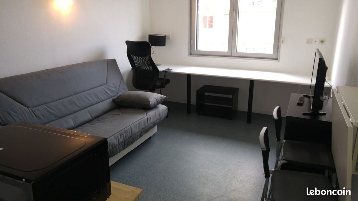 Studio meublé de 21 m2 dans une résidence sécurisée (vigik, interphone et vidéo surveillance) avec ascenseur, Avenue de Laon à 3 minutes à pieds d'une station de tramway. Le centre ville est à 10 minutes en tramway de cette station et la gare à 6 minutes. Il est équipé d'un canapé clic clac. Le matelas fait 130 cm et 15 cm d''épaisseur avec une densité de mousse de 35 kg/m2. Un Tv de 32 pouces. Grand bureau sous la fenêtre avec fauteuil et nombreux rangements. Un placard et une penderie. Le coin cuisine est équipé d'un réfrigérateur, de deux plaques de cuisson et d'un micro onde. La vaisselle est fournie avec poêle et casserole. La salle de bain est équipée d'une baignoire avec wc, d'un petit meuble de rangement et d'une petite étagère. Le logement, lumineux, est équipé de fenêtre récente (1 an) en triple vitrage avec volet roulant électrique Nombreux commerces a proximité (Carrefour City, boulangerie, restaurants, banque..) La station de tramway Danton Rauseo est à 3 minutes à pieds. L'immeuble est équipé de wifi (payant) et met à disposition une machine à laver et un sèche linge au rdc (payant). Loyer : 400 + 30 € de charges (eau, entretien des communs, sorties des poubelles)