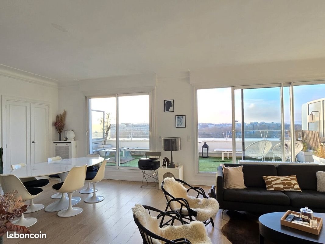 Appartement 2 pièces 67 m² Boulevard André Maurois et à proximité du jardin d'acclimatation et des commerces, Quod et Associes vous propose un appartement entièrement rénové à louer meublé. Situé au 9 ème étage et dernier étage par ascenseur d'un immeuble sécurisé, cet appartement de 67m² se compose d'une entrée avec rangements, un séjour donnant sur une magnifique terrasse avec vue panoramique sur la Tour Eiffel et le bois de Boulogne. La cuisine indépendante est meublée et entirèrement équipée. Une chambre avec accès balcon, une salle d'eau et water closet. En sus, un emplacement de parking en sous-sol. ~Chauffage et eau chaude collectif~Appartement libre Immediatement. Honoraires de location Bail Code Civil : 15% du loyer annuel. Honoraires résidence principale : 15 €/m2 Ttc. Surface : 67 m² Date de réalisation du diagnostic énergétique : Consommation énergie primaire : 216 kWh/m²/an Consommation énergie finale : Non communiqué Les informations sur les risques auxquels ce bien est exposé sont disponibles sur le site Géorisques :