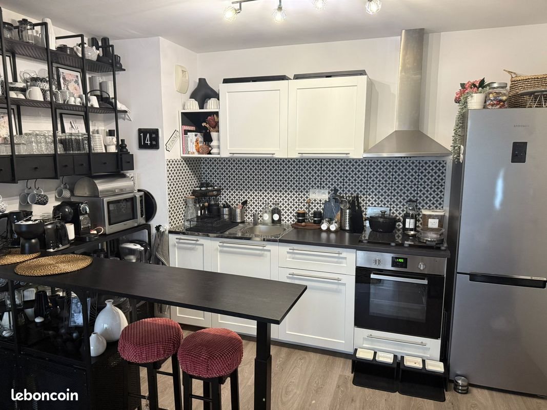 A vendre à Lomme Bourg – Saint Philibert, de particulier à particulier : Appartement T2 44 m² avec loggia de 5 m², à proximité immédiate du métro St Philibert, du centre commercial Carrefour Ikéa Kinépolis & co, et des axes routiers (rocade Nord-Ouest, A1, A25) Dans une résidence récente de moins de 10 ans et très bien entrenue, sécurisée (portail, visiophone), au calme (en retrait, ne donne pas sur la route, aucun bruit de route). Les atouts : - Un appartement orienté plein sud avec une belle luminosité. - Pas de vis à vis, aucune circulation automobile en face de l'appartement. - Une résidence entièrement close avec portail d’accès télécommandé. - Un ascenseur avec interphone. - 1er étage (sur 3 étages). - Un appartement Tres bien isolé (Bbc) pour des vraies économies d’énergie. - Des volets roulants dans chaque pièce. - Une place de parking privée dans l’enceinte de la résidence. - Aucun frais d’agence L’appartement : - Une entrée (3 m²). - Un Wc séparé, accessible depuis l’entrée (2 m²). - Un séjour (21,5 m²) parqueté avec cuisine ouverte équipée (plaques vitro, hotte, meubles de rangement bas & muraux) équipé de grandes baies vitrées. - Un beau balcon (loggia = balcon fermé) (5 m²) sans vis-à-vis, permettant détente et/ou repas - Une chambre (12,5 m²) avec parquet. - Une salle de bain (5 m²) attenante à la chambre, carrelée, avec meuble vasque, miroir, sèche-serviettes, baignoire avec option douche (pare-baignoire) Le chauffage et la production d’eau chaude se font grâce à la chaudière individuelle à condensation au gaz. La résidence (Le Carré des Arts) est située 28 rue du Grand But à Lomme. Appartement Pmr (accessibilité personnes à mobilité réduite) L'appartement est loué depuis 9 ans par la même locataire (exemplaire !). Le bail arrive à échéance dans 2 ans 1/2. Revenus fonciers assurés de 609 € par mois. N'hésitez pas si vous avez besoin d'informations.