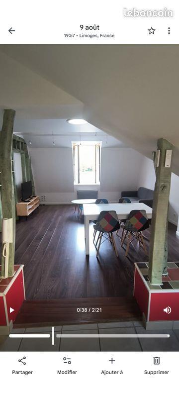 Situé au centre-ville de Limoges face au jardin de l’Évêché au 17 avenue Georges Dumas, je vous propose ce T3 tout équipé traversant de 79,18 m² dont 70,32 m² habitables (loi carrez). Cet appartement est agencé de la façon suivante : - entrée au 1er étage (6,02 m²) - séjour et cuisine au 2ème étage (26,51 m²). La cuisine est équipée d'un réfrigérateur, d'un four, d'un lave vaisselle, d'une plaque à induction et d'une hotte d'aspiration. Le séjour est équipé d'une table avec 4 chaises, d'un canapé, d'une table basse et d'une télévision. - couloir avec placard au 2ème étage (6,34 m²) desservant les pièces ci-dessous: - 1 Wc séparé (1,65 m²) - 1 salle d'eau avec lave-linge (6,63 m²) - 2 chambres de (12,86 et 10,31 m²) avec chacune leur placard, literie en 140x190 Libre de suite. Photos supplémentaires et visite vidéo disponibles sur simple demande. La visite vidéo a été réalisée mi-aout 2025 après avoir meublé l'appartement. Caractéristiques du logement: - chauffage électrique - Fenêtres double vitrage - Vmc Loyer par chambre: 360€ par mois + 50€ de charges Les charges comprennent l'eau, l'électricité, internet par fibre, l'entretien et l'électricité des communs ainsi que la Taxe d'Enlèvement des Ordures Ménagères. Les charges sont soumises à régularisation annuelle.