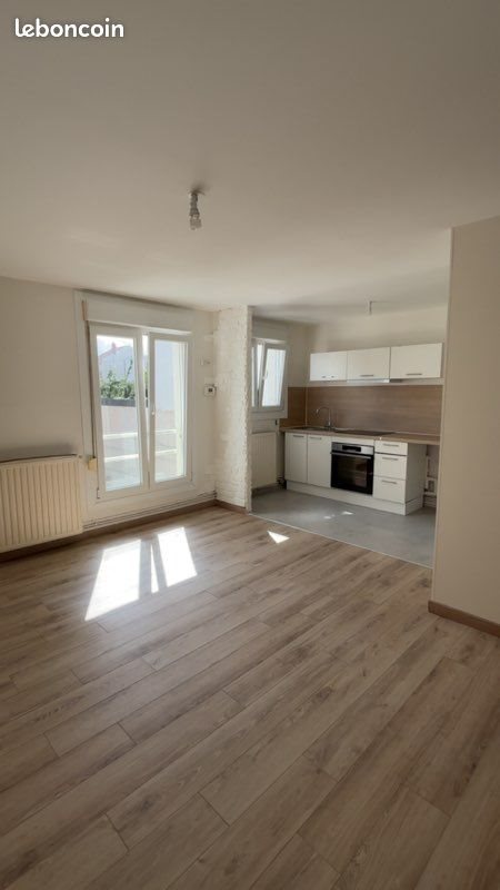 Loue appartement de type 3 - 1er étage sur 1 étage, proche centre ville (secteur Avenue de Laon - Place luton) et de tous commerces, écoles, arrêt de bus et tram. Petite rue calme, à sens unique. Appartement entièrement rénové en 2025. Petit mais bien agencé, pas perte d'espace : - un salon assez spacieux - cuisine ouverte sur séjour récente (2025), moderne et entièrement équipée : four, plaques de cuisson au gaz, hotte aspirante, nombreux rangements - 2 chambres dont une avec placard - Petite Sdd équipée (meuble sous vasque, miroir, douche) neuve (2025) - Wc séparés - Porte d'entrée sécurisée, fenêtres double vitrage + volets roulants - Cave - eau chaude, cuisson et chauffage au gaz - stationnement aisé dans cette rue Libre immédiatement Loyer : 575€+ 75€ de charges (edf communs, provision eau froide, entretien chaudière)