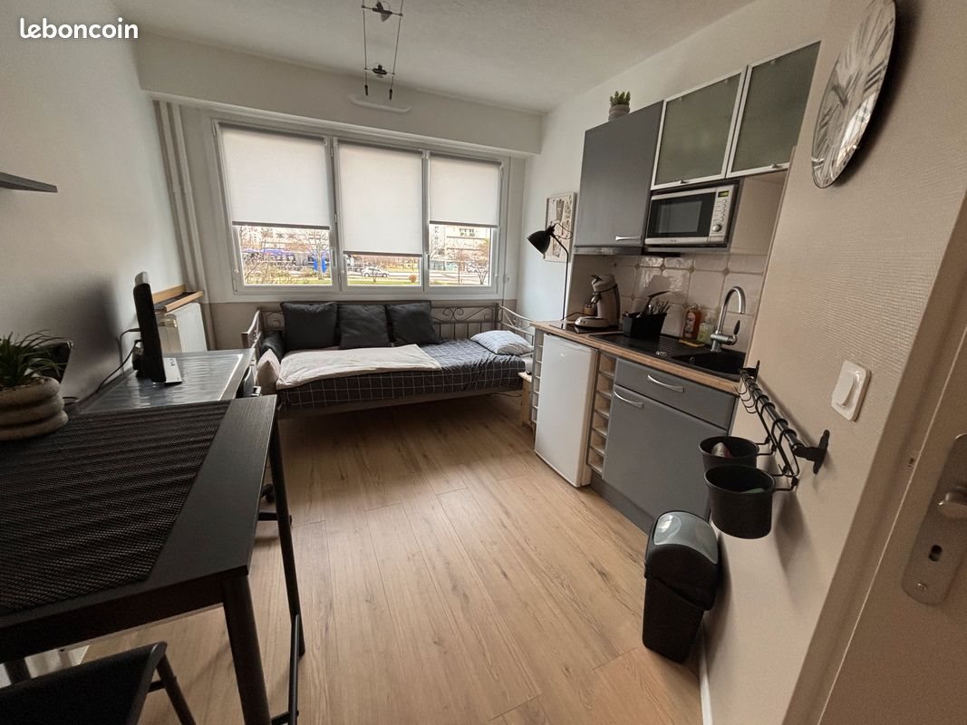 Studio meublé de 14,56 m², rénové, situé au 1 er étage d'une résidence de 23 étages. Emplacement à proximité immédiate des transports en commun (Bus, tramway) des facultés, du centre aquatique de Tours, du centre ville et des commerces. Le studio se compose d'une entrée avec grand placard à portes coulissantes, d'une pièce de vie fonctionnelle, d'un coin cuisine aménagé et équipé, d'une salle d'eau avec douche, Wc et vasque. La résidence est sécurisée, bien entretenue avec gardien résident sur place. Le chauffage est collectif au gaz (inclus dans les charges). Electricité à la charge du locataire. Bail de 10 ou 12 mois à définir. Profil locataire : étudiant ou jeune actif( ve) avec garantie. Loyer mensuel 475 € Charges 60 € Dépôt de garantie 800 €