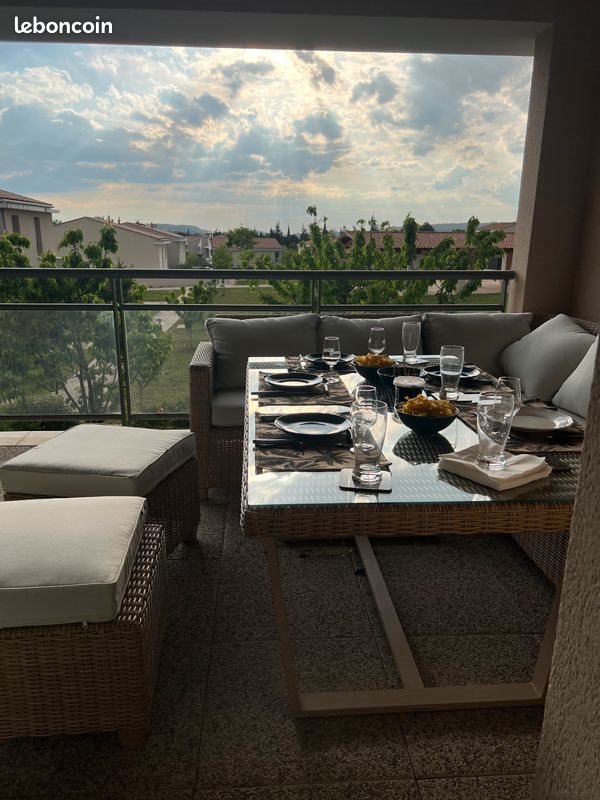 Logement récent à l’état neuf de 43m2 traversant Est-Ouest et doté d’une grande terrasse de 16 M2 orientée Ouest Loué avec une place de parking privatif extérieur. Quartier situé sur la route de Berre, proche des axes autoroutiers, commerces de de tous types, pôle santé et ligne de bus. Accès rapide et direct Aix-centre, gare Tgv et aéroport Marignane. Résidence sécurisée avec très grand parc arboré et habitations à un seul étage. Les plus : une vue magnifique sur le verger et son propre carré potager. Appartement très calme et lumineux situé au 1er et dernier étage d’une bastide de 4 logements. Séjour : 23 m2, grandes baies vitrées donnant sur la grande terrasse couverte Cuisine moderne équipée très complète de 4m linéaire : micro-ondes Bosch intégré, plaques 4 feux vitrocéramique et lave-linge séchant Electrolux capacité 8kg Wc séparé. De nombreux rangements, dressing dans salon ainsi qu’armoires intégrées dans dégagement et chambre. Chambre : orientée est avec vue dégagée sur un champ et sans vis-à-vis, très lumineuse avec deux grandes fenêtres, grand dressing avec 2 portes miroirs coulissantes Salle d’eau avec douche à l’italienne et rangements. La fibre est disponible. Vous n’avez plus qu’à poser vos valises. Ballon d’eau chaude individuel chauffé au gaz Chauffage et climatisation individuels par pompe à chaleur réversible Daikin avec cache-clim décoratif Volets roulants sur baie, porte-fenêtre de terrasse et fenêtres de chambre. Disponible le 1er février 2026. Loyer de 965€ +105€ charges Garanties solides demandées. Agences s’abstenir.