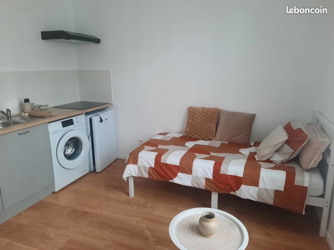 Studio meublé Tours Centre quartier Blanqui Cathédrale Entièrement rénové haut de gamme Au rdc d'un bel immeuble art déco Pièce à vivre avec cuisine ouverte et espace nuit Salle d'eau avec Wc 525 e