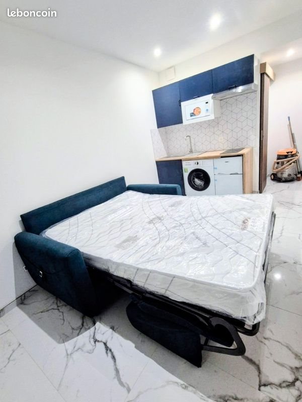 Studio meublé calme et ensoleille refait à neuf, situé au rez-de-chaussée d'un immeuble de 3 étages à Nice, cuisine équipée, machine a laver, tv, armoire dressing Canape rapido neuf tres confort dispo debut janvier Preference etudiant avec caution parents Loyer 620 e avec eau et charges comprise.