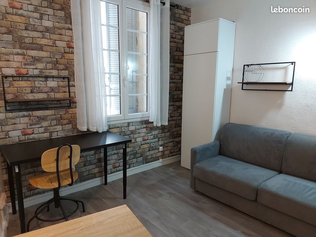 Loue studio meublé rue Espariat, à deux pas du cours Mirabeau. Entièrement rénové, coin cuisine équipé d'une plaque à induction, d'un four micro-ondes, d'un réfrigérateur et d'une table haute pour les repas. Un espace bureau, un clic-clac, une armoire et des étagères. Une salle d'eau avec Wc et un sèche serviettes électrique. Chauffage individuel électrique à accumulation. Au rez-de-chaussée, local vélo fermé à clé. Garanties financières ou garant exigés. Nous organiserons les visites le samedi 6 décembre à partir de 9h. Le studio sera disponible le 1er Janvier. Mon numéro de téléphone est dans l'annonce, veuillez m'appeler si vos êtes intéressé.