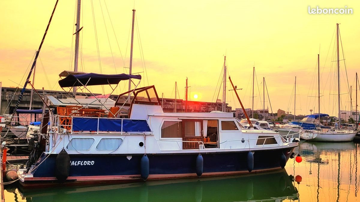 Studio Atypique Vedette Hollandaise mer et rivière de 1985. Amarré à l’année au Port de Plaisance de Bordeaux (Bassin à Flot). Parfait pour navigateur ou pour y vivre à l’année, Un Veritable Studio Atypique Au Coeur De Notre Magnifique Ville De Bordeaux dans un quartier prisé avec toutes les commodités sur place (transport en commun bus et tram, tout commerces, Leclerc, Lidl, restaurants , salle de sports, musés, cinéma, magasins spécialisés matériaux pour bateaux et bien plus encore…). 1 place de parking 12m X3.30m. Te 1. Ta 2.80 Moteur Daf 100cv de 2900 heures. Plan de sondage de novembre 2023. 2 postes de pilotage. Terrasse arrière équipée d’un bimini. A l’intérieur, carré équipé d’un frigo trimix, four, gazinière, évier ainsi qu’une table avec banquette d’angle. Hauteur sous barrot 180cm. Double vitrage. A l’arrière une cabine avec lit de 140cm et un cabinet de toilette avec wc électrique. A l’avant un salon transformable en couchette double et une douche. Nombreux rangements. Réservoir Gazole 300L. Réservoir d’eau 300L. Navire navigant en bon état, biensur quelques pointes de peinture à ajuster (c’est un bateau). Photos supplémentaires sur demande.