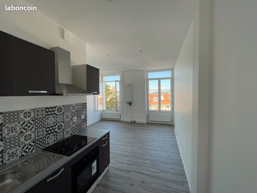 T2 45m², entièrement rénové Quartier Carnot, 5 mn à pied du centre-ville et de la cité du design 1er étage Lumineux composé d’un coin cuisine équipée ouvert sur pièce à vivre, une grande chambre, une salle de bain avec douche, wc séparé. Chauffage individuel au gaz Vue dégagée Immeuble équipé d’un Digicode Eau froide comprise dans les charges