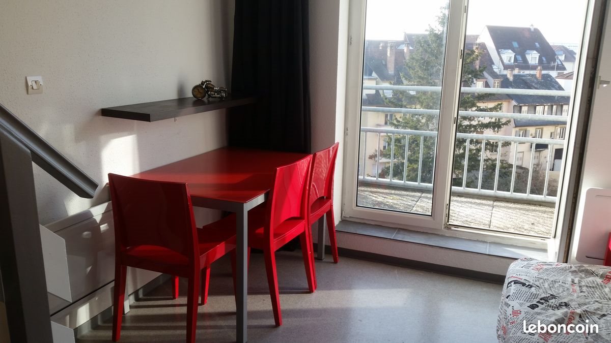 Particulier loue en direct un mignon 2 Pieces en Duplex, Meuble A Strasbourg-Neudorf dans un quartier calme à proximité de l'Av. De Colmar et du Tram station Schuthfeld lignes A-E( 3mn) Dans une résidence, principalement de jeunes, située dans une propriété fermée et sécurisée avec un gardien-concierge. Idéal pour personne seule ou jeune couple. L'appartement en duplex de 31 m2 est situé au 4ème et dernier étage avec ascenseur. Il est lumineux avec un balcon à l'ouest bénéficiant d'une vue dégagée. En Bas : -Kitchenette avec meubles bas et haut, évier, 2 plaques de cuisson élec. Frigo, micro-ondes, couverts verres et ustensiles fournis. Placard sous escalier avec nécessaire de ménage et aspirateur . Bar-Desserte avec 2 strapontins. -Sejour : table en verre et 4 chaises, canapé convertible Bz accès au balcon par une grande porte fenêtre -Balcon avec table et 2 chaises pliables En Haut : -Chambre avec lit de 140X200, matelas et literie, couette coussins...neufs, Velux occultant. Armoire, commode ,2 chevets -Penderie -Salle De Bains avec baignoire, meuble sous vasque, armoire de toilette miroirs, sèche serviettes ,Machine à Laver Chauffage électrique avec radiateurs programmables récents. Chauffe-Eau électrique individuel Appartement connecté à la fibre. Local à Velos fermé Loyer : 665 € mensuel Charges : Provision de 55 € par mois, régularisation annuelle, comprenant l'eau, l'entretien des communs, l'ascenseur , le gardien concierge... Depot De Garantie : 1330 €. Pas de frais d'agence. 1 Place De Parking dans la cour fermée est en option à 40 € Caution ou Garantie Visale éxigée selon situation. Disponible De Suite Tant que l'annonce est en ligne l'appartement est disponible Candidats Interesses : Merci de préciser votre identité et âge, votre situation professionnelle et familiale , vos revenus .... Dpe du 14/08/25 Montant estimé des dépenses annuelles d'énergie pour un usage standard entre 560 et 810€ Prix moyen des énergies indexé sur les années , abonnement compris. Les informations sur les risques auxquels ce bien est exposé sont disponibles sur le site Géorisques .