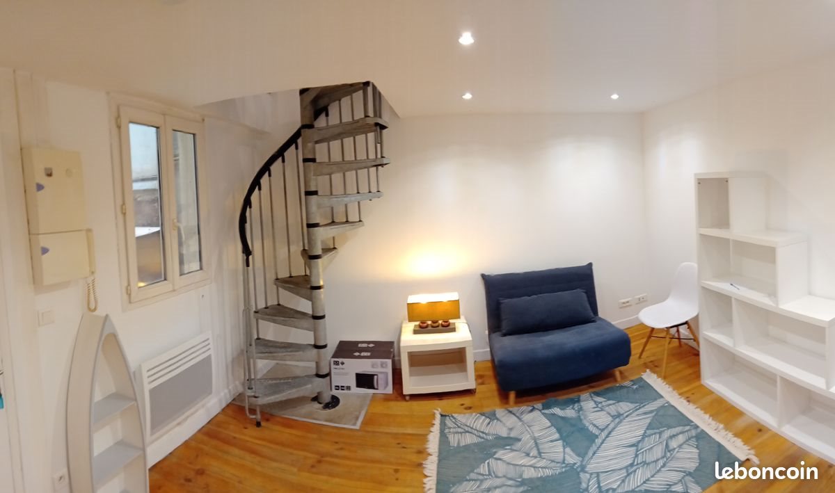 Superbe T1bis situé entre Victoire en Musée Aquitaine en très bon état. L'appartement est un duplex composé au premier niveau d'un séjour avec coin cuisine équipée et à l'étage un coin nuit, salle d'eau avec Wc. Chauffage électrique, double vitrage récent de qualité, interphone, Vmc. Libre fin janvier. Loyer 660 euros incluant box WiFi. Merci d'envoyer un mail décrivant votre situation et situation des garants.